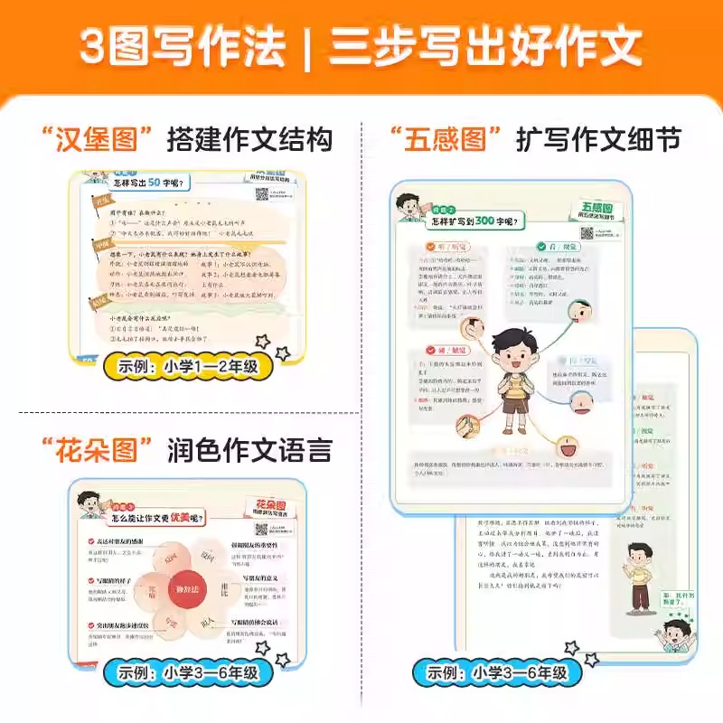 官方正版 学而思同步作文3图搞定300字写作技巧素材积累小学一二年级看图写话三四五六年级限字作文书视频讲解专项训练思维导图作文