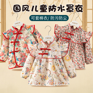 儿童罩衣宝宝吃饭围兜防水防脏饭兜灯芯绒围裙秋冬洋气女童反穿衣