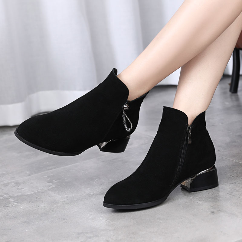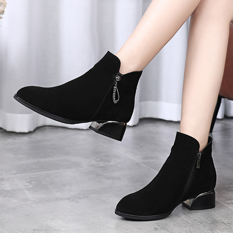 中跟平底马丁靴冬加绒女鞋 磨砂皮真皮短靴女粗跟单靴2025新款 秋季