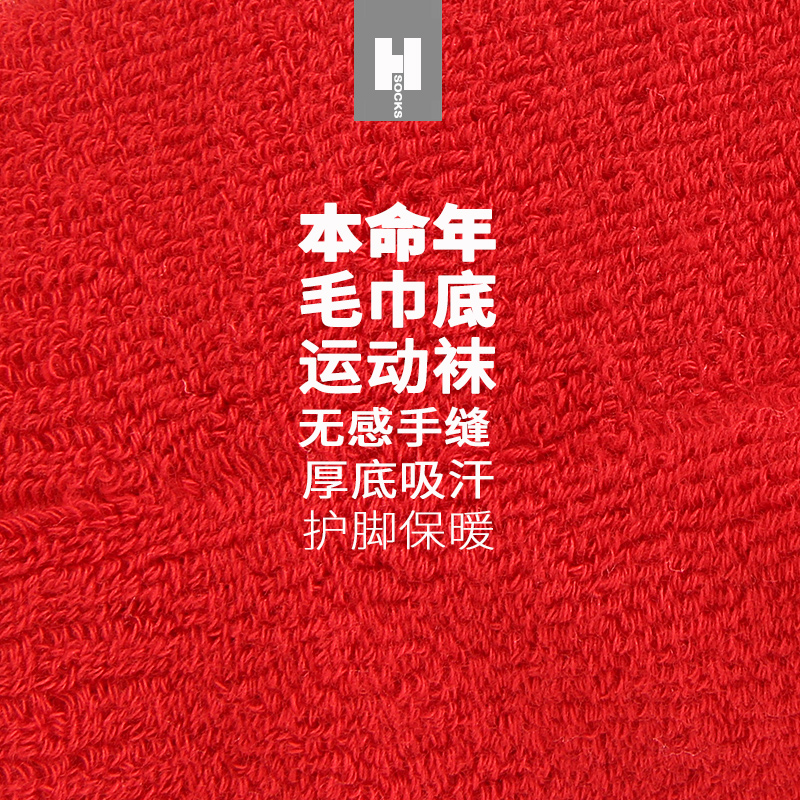 凰棉本命年大红色男女纯色棉中高筒长袜秋冬加厚情侣毛巾底短袜子