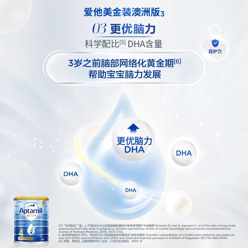 6岁3段 进口3 澳洲爱他美金装 4段宝宝婴幼儿牛奶粉900g新西兰原装
