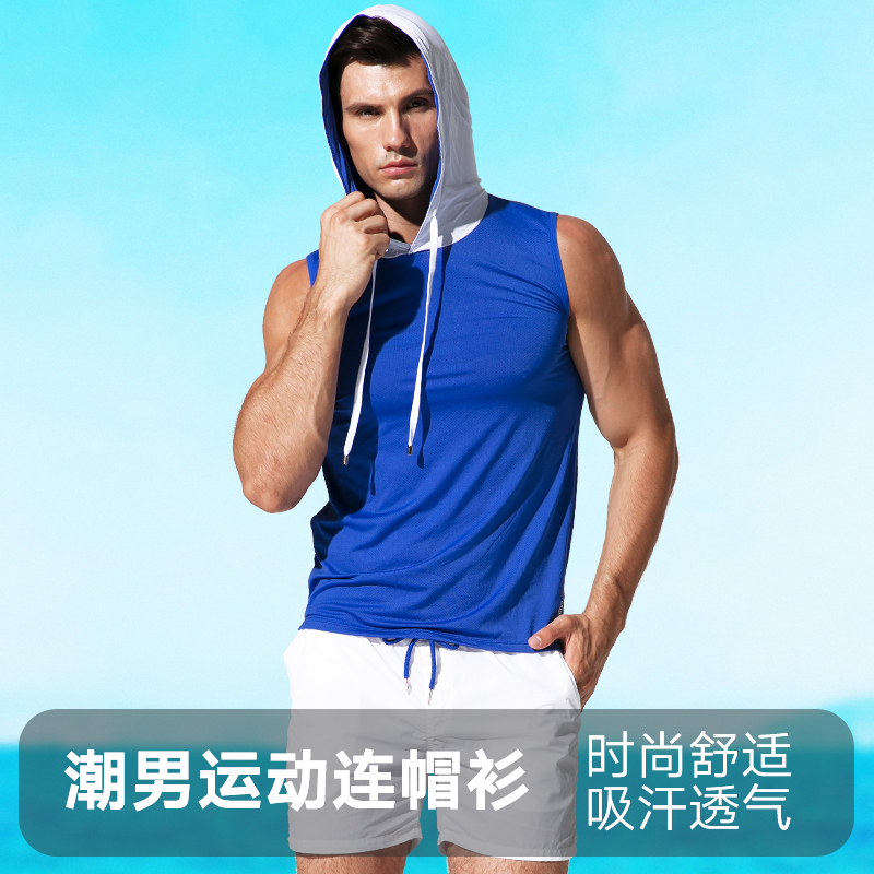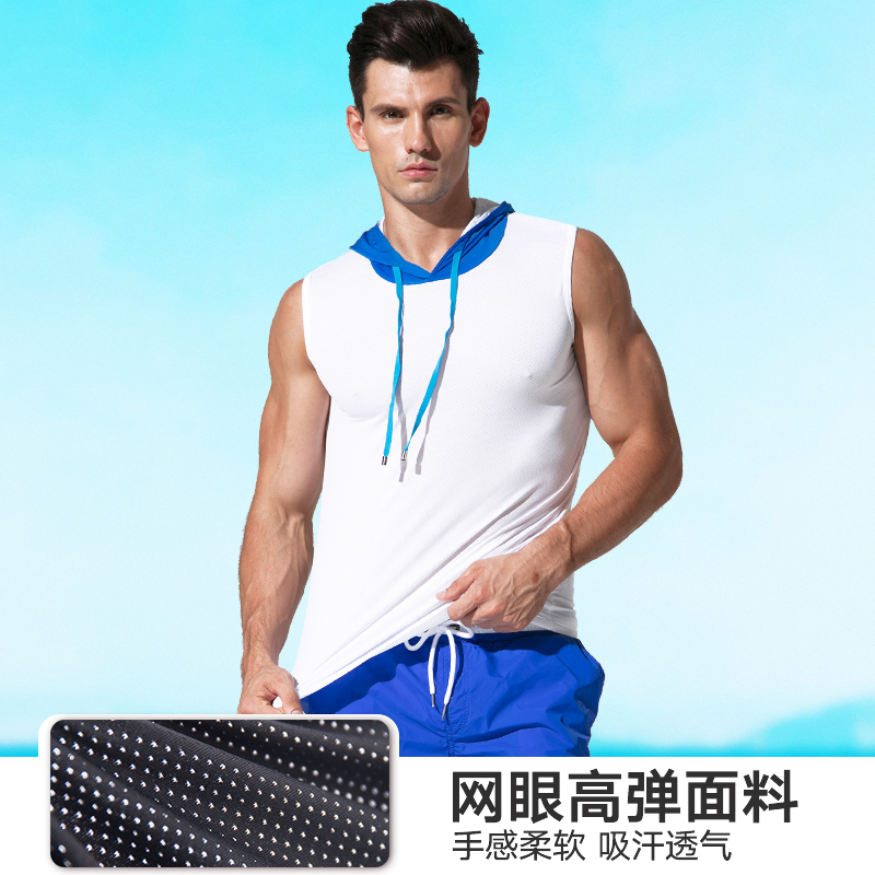 T恤弹力网眼健身坎肩外穿 男士 desmiit休闲连帽无袖 运动背心夏季