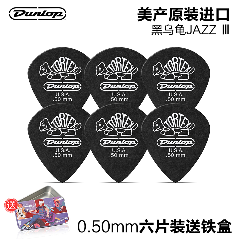 六片装 Dunlop邓禄普民谣电木吉他拨片小乌龟Jazz3磨砂扫弦弹片