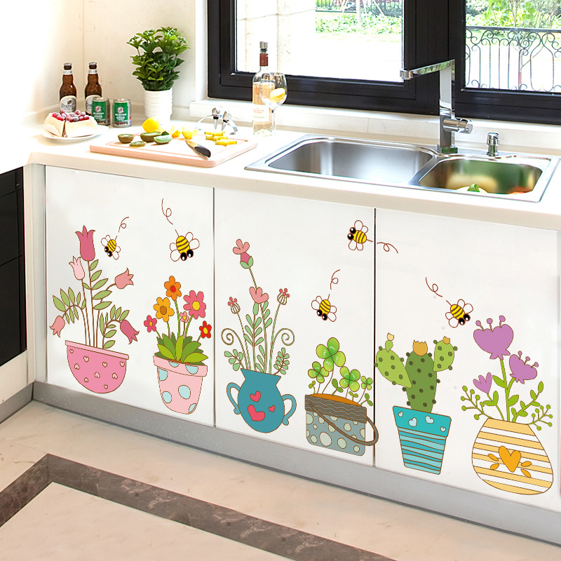 向日葵踢脚线贴画厨房柜子贴纸橱柜装 饰防水墙贴衣柜翻新墙纸自粘