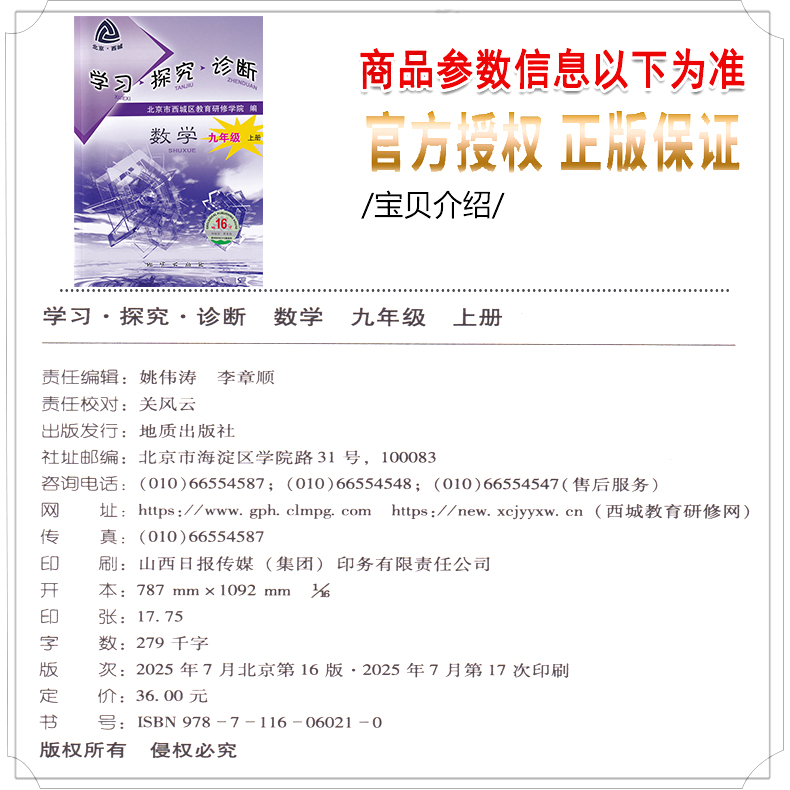 R学探诊789年级同步练习西城教育研究学院 6册数学人教版 现货2026新北京西城学习探究诊断数学七上八上九上下16版 七下八下年级15版