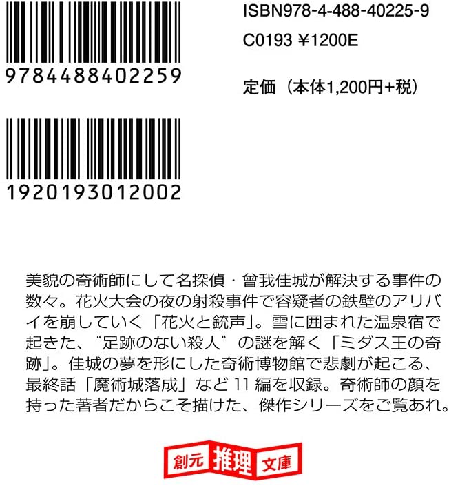 東京創元 日本进口书籍 奇幻侦探曾我佳城全集 推理文庫 奇術探偵曾我佳城全集 日版 推理小说 下 社 现货 泡坂妻夫 深图日文