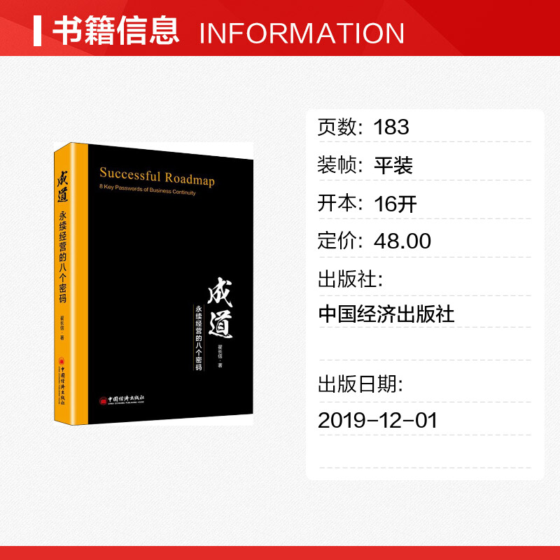 励志 社 八个密码 中国经济出版 图书籍 新华书店正版 管理其它经管 著 翟长信 永续经营 成道