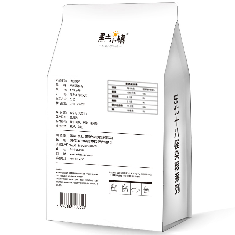 黑土小镇新有机黑米1.25kg真空包装 新米东北五谷杂粮粗粮黑大米