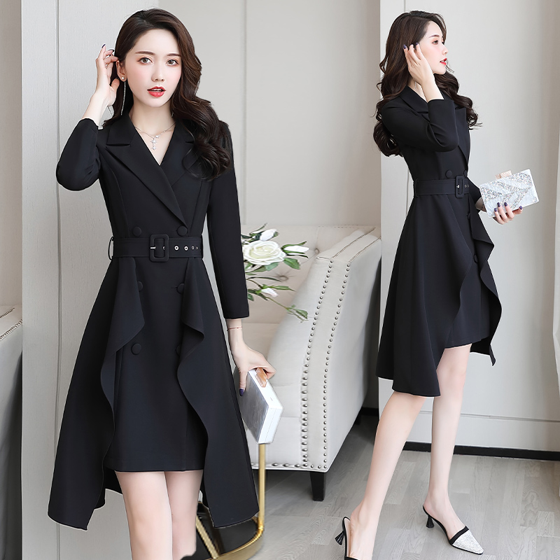 假两件背带连衣裙女春秋季 遮肚子显瘦气质高端灯芯绒欧货裙子 大码