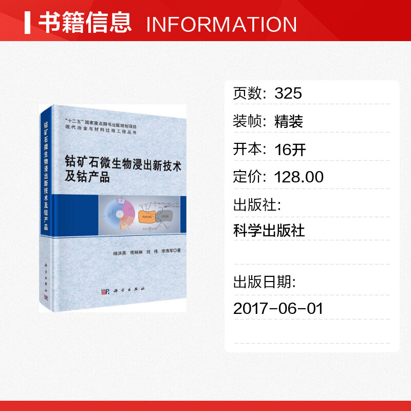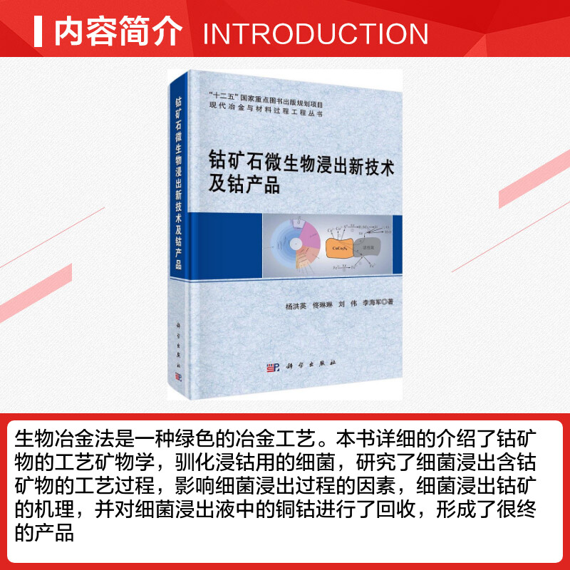 著 冶金工业专业科技 新华书店正版 钴矿石微生物浸出新技术及钴产品 科学出版 等 图书籍 社 杨洪英