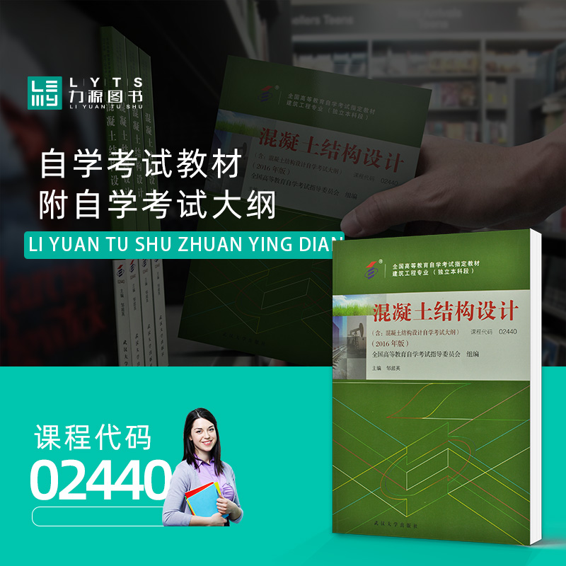 武汉大学出版 2440 全新正版 邹超英 主编 02440混凝土结构设计附大纲2016年版 力源图书 自学考试教材 社 9787307178502 包邮