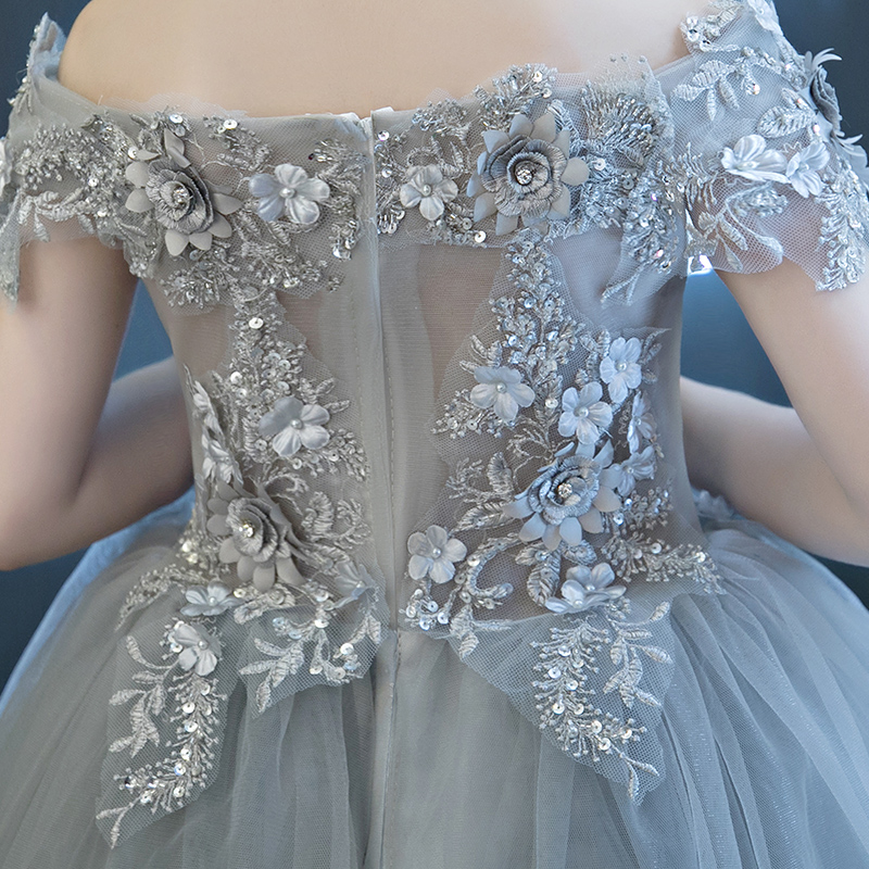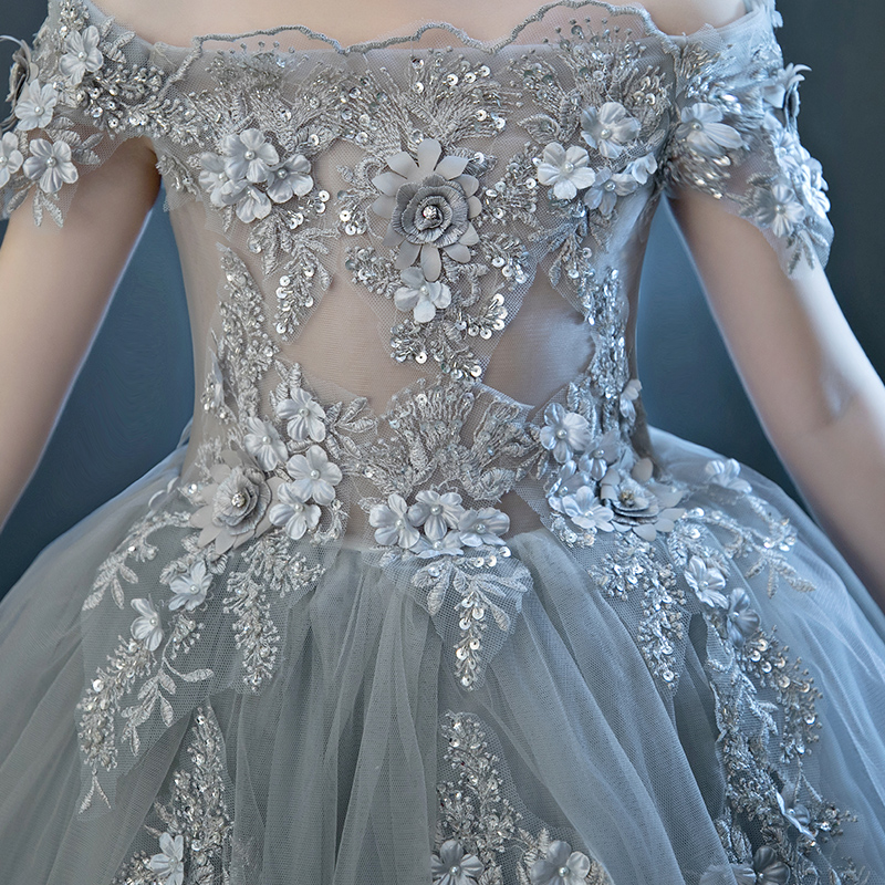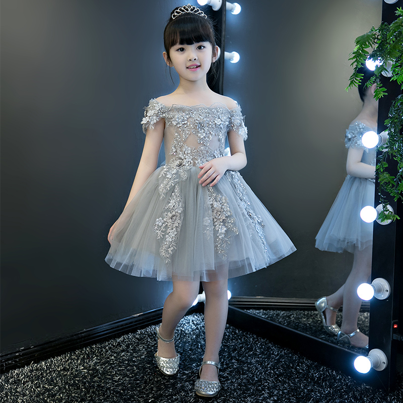 儿童礼服女童公主裙蓬蓬裙花童钢琴演出服一字肩小主持人高端婚纱