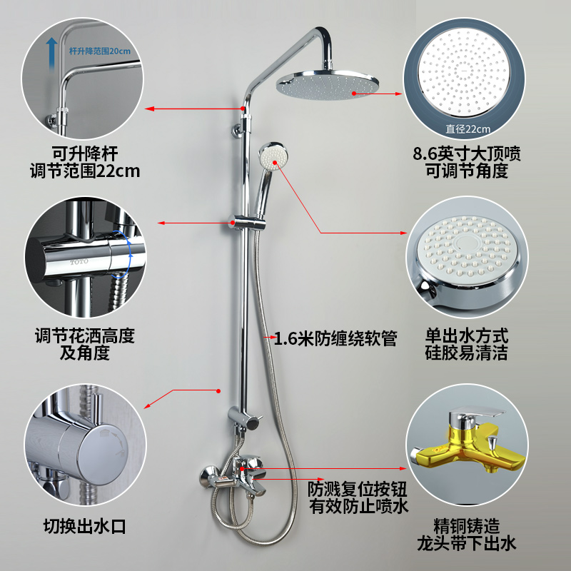 淋浴花洒套装 家用卫浴浴室洗澡龙头三件套增压喷头沐浴器普通恒温