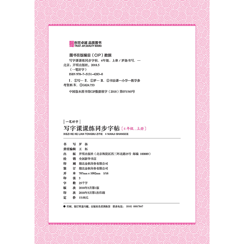 小学生写字课课练同步字帖4四年级上册字帖临摹透明蒙纸字帖儿童钢笔圆珠笔铅笔练字练习描红楷书硬笔罗扬书法语文教材字帖人教版