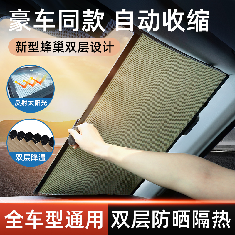 汽车双层遮阳挡自动伸缩遮阳帘防晒隔热车用前挡风玻璃窗遮光神器