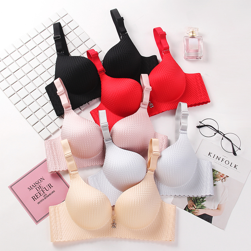 固定杯无钢圈文胸罩 运动一体美背心式 无痕内衣女小胸聚拢夏季 薄款