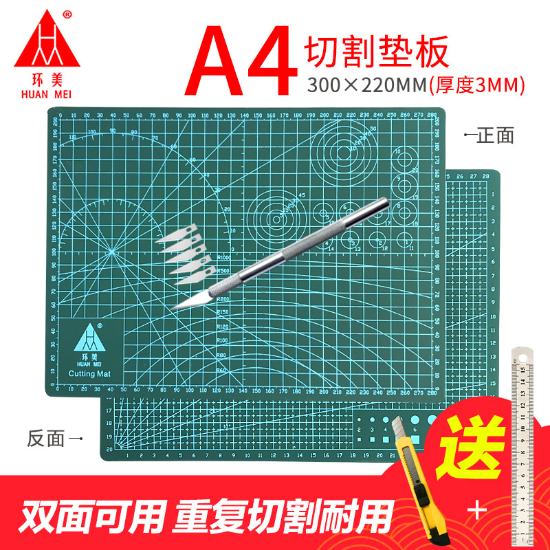 环美a3切割垫板大号手工套装 a2桌面刻板学生用画画美工裁纸工作pvc手帐绿色软桌垫a4模型防割双面雕刻尺寸diy