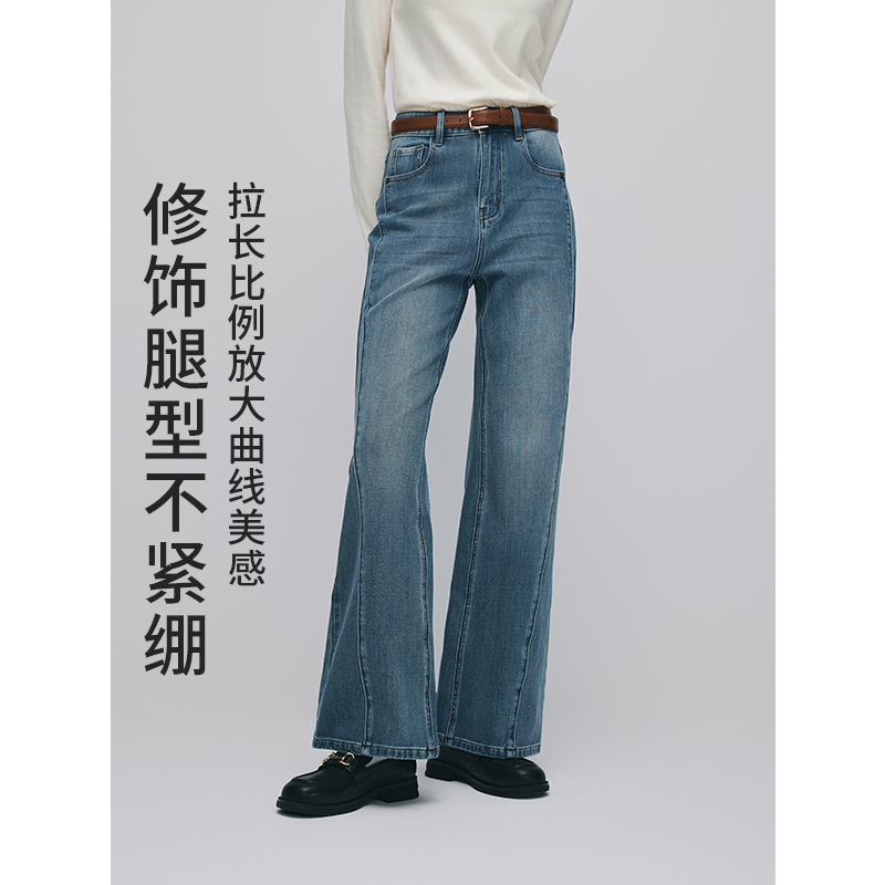 显瘦宽喇叭牛仔长裤 热风女士微喇牛仔裤 复古修身 新款 2025年秋季