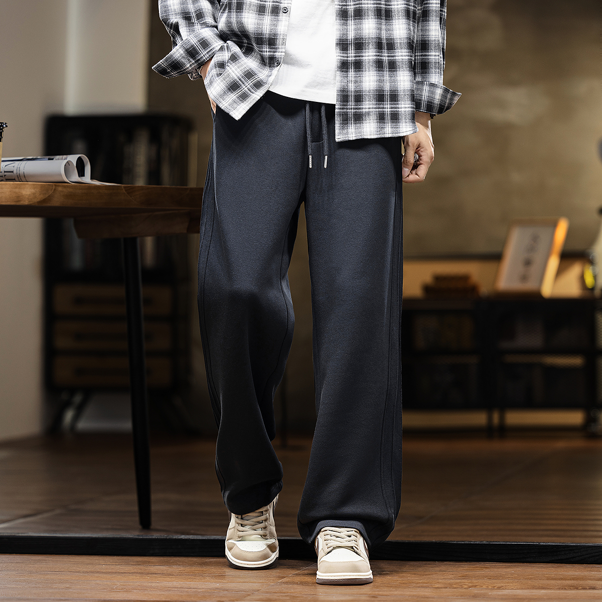 痞帅潮流TU 男侧边织带简约设计感宽松直筒裤 唐狮秋冬季 休闲长裤