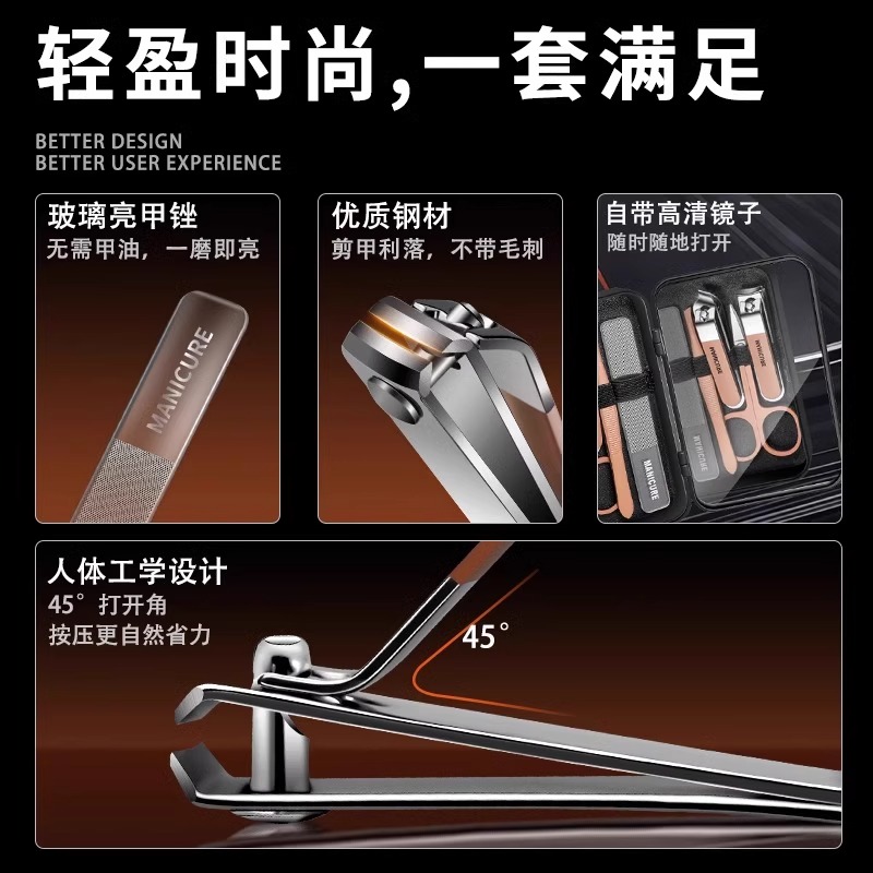 防飞溅指甲刀套装 全套家用高档指甲剪学生宿舍便捷斜口指甲钳