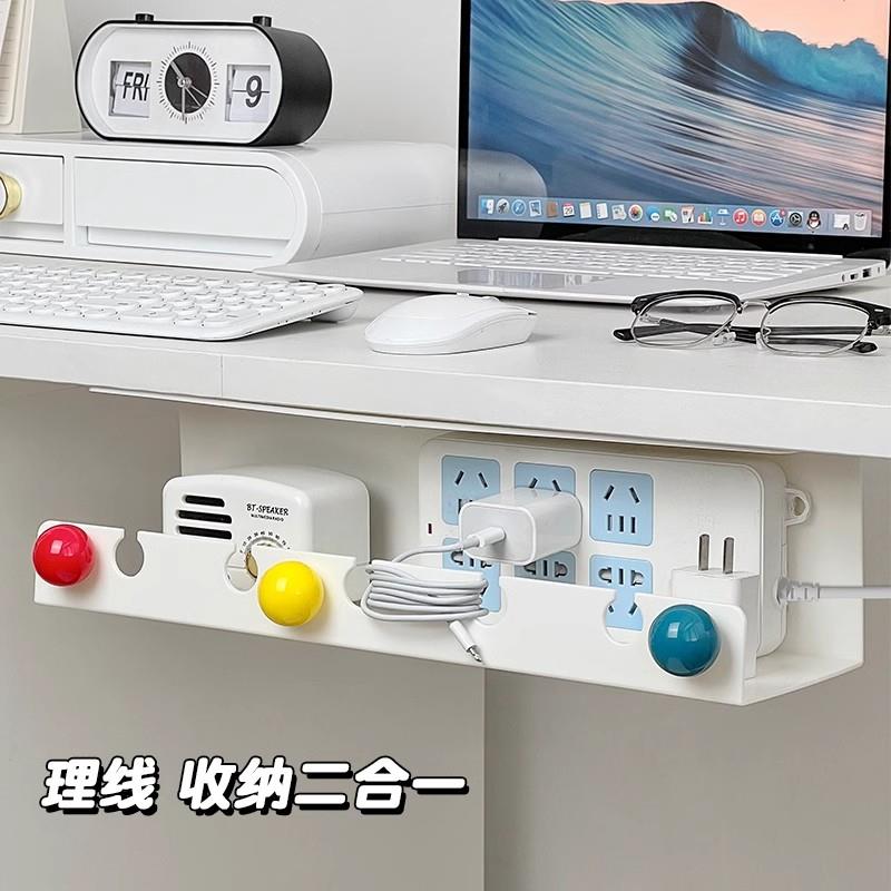 插排固定器办公桌下墙上插板电线理线架免打孔理线器收纳整理神器