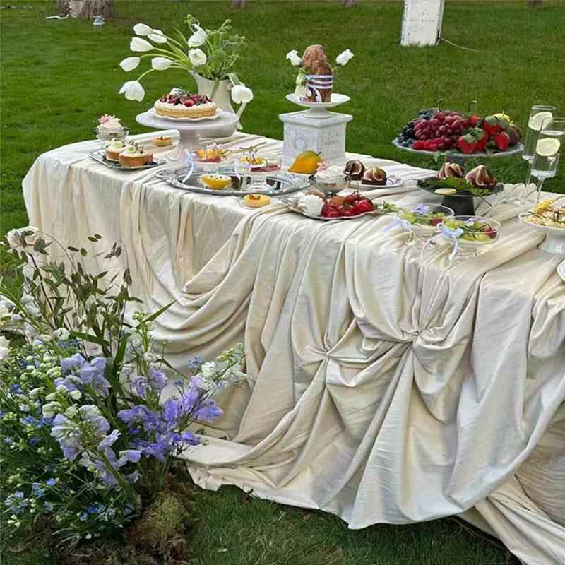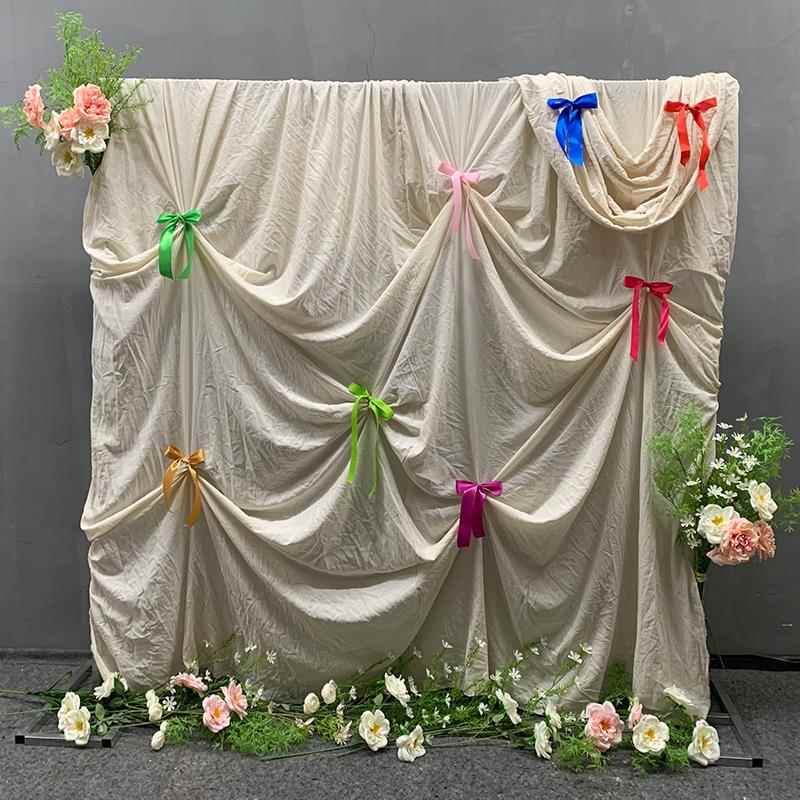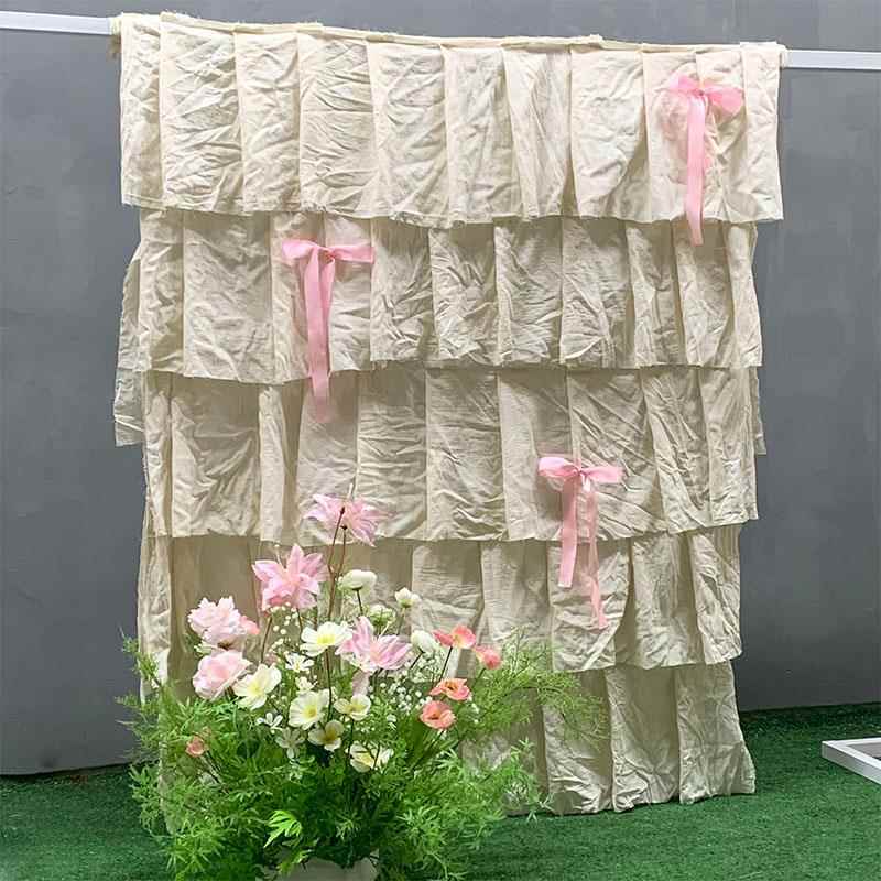 婚庆棉麻原生布奶油风舞台背景幕布挂布甜品桌布婚礼生日布置装 饰