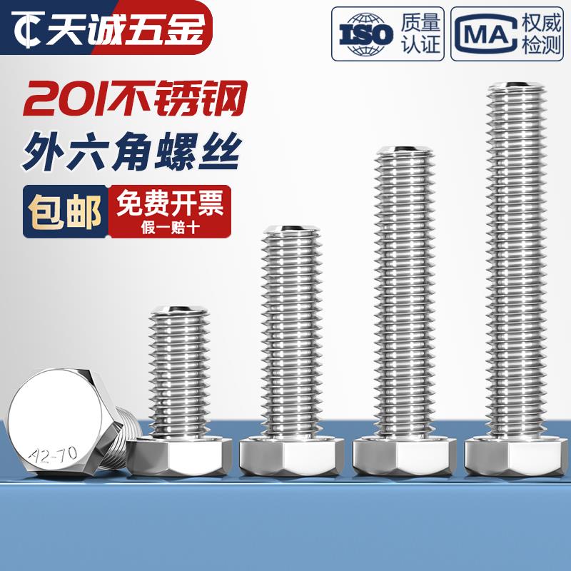 201不锈钢外六角螺丝螺栓加长螺杆钉 M4M5M6M8M10M12M14M16M18M20