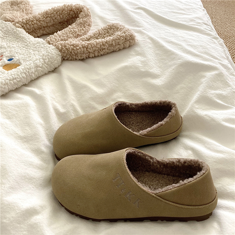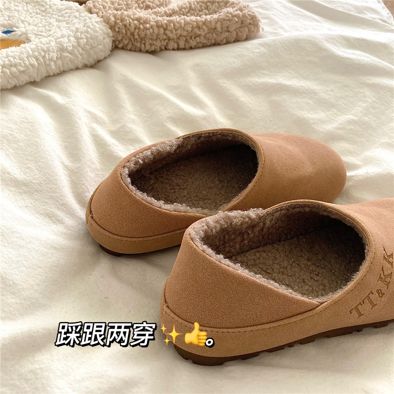 外穿毛毛拖鞋 女INS冬季 自留懒人羊羔毛加绒勃肯棉拖鞋 踩跟两穿
