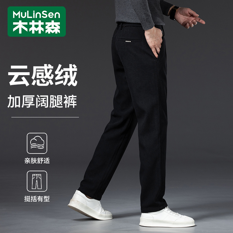 新款 加绒男装 运动宽松卫裤 罗蒙秋季 加厚休闲长裤 子男士 秋冬款 男 裤