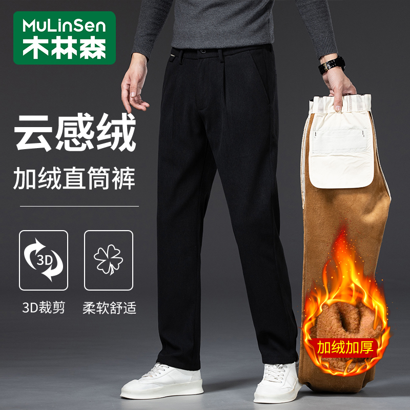 新加绒加厚可选直筒长裤 25秋冬季 男 海澜之家易打理商务休闲裤 HLA