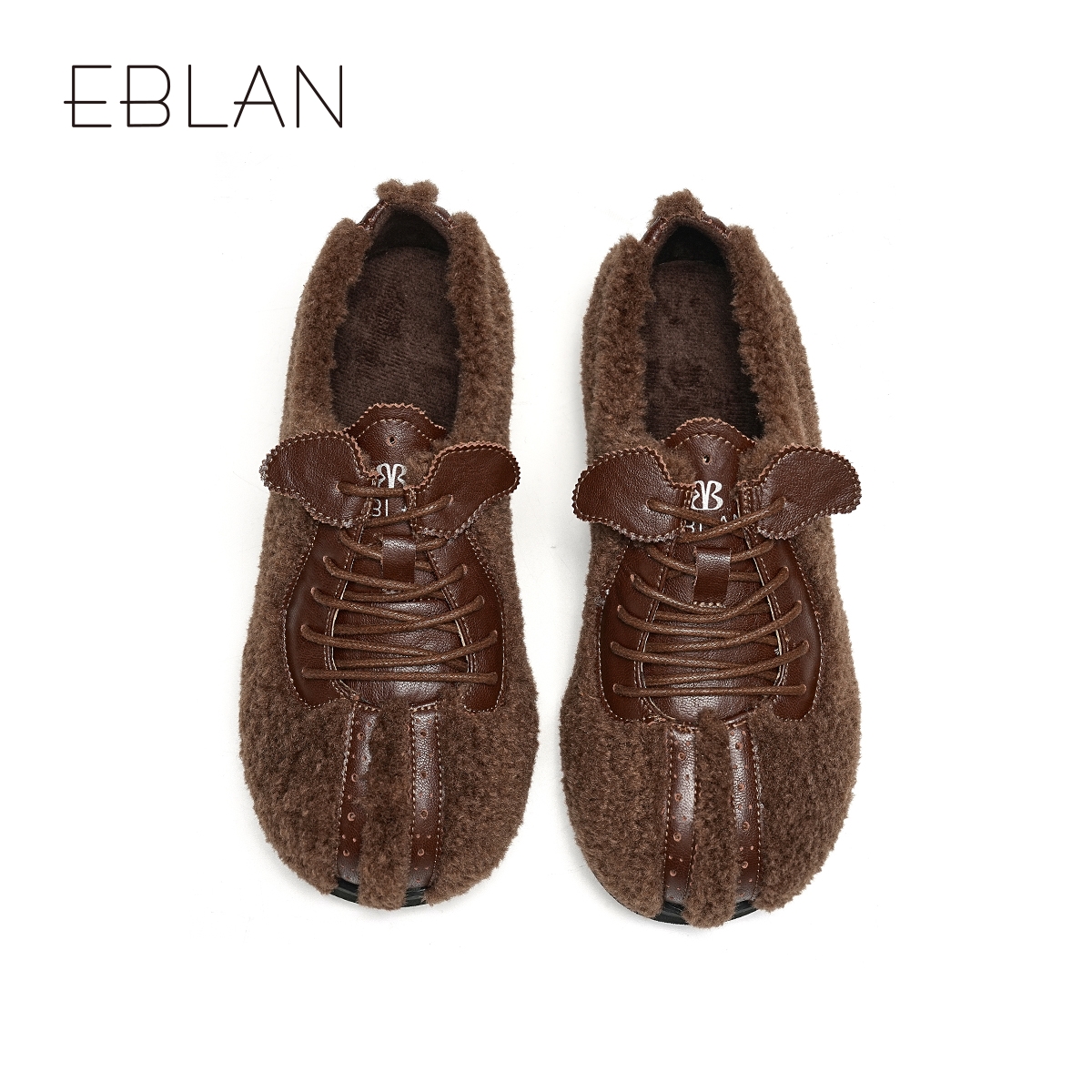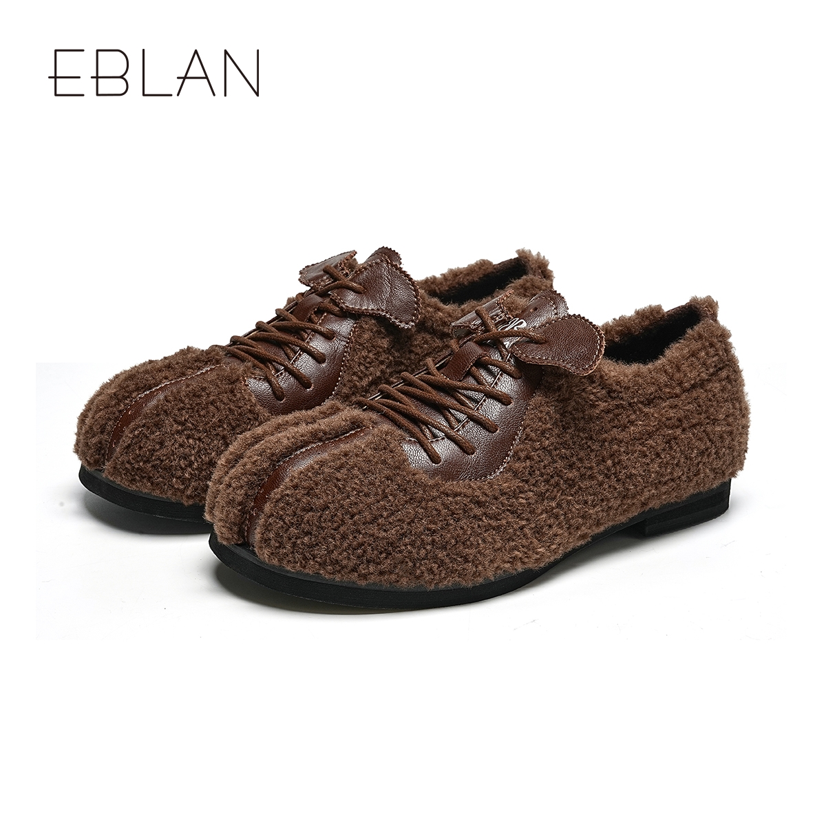 加绒保暖休闲德训鞋 EBLAN 平底单鞋 女2025秋冬新款 伊伴羊羔毛毛鞋