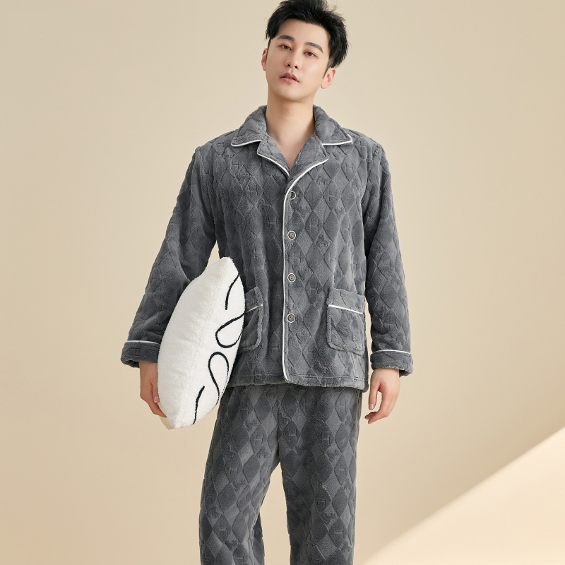 家居服套装 芬腾蓬蓬绒情侣睡衣女秋冬季 保暖抗静电珊瑚绒青年男士