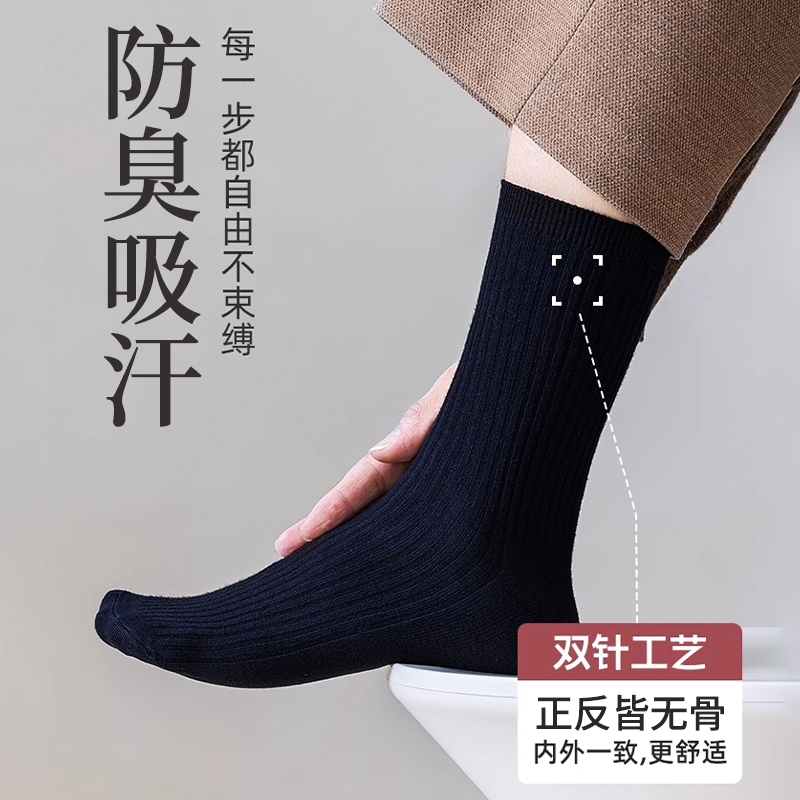 中筒袜秋冬透气纯棉吸汗防臭黑色长袜 有棵树袜子男士 纯棉抗菌