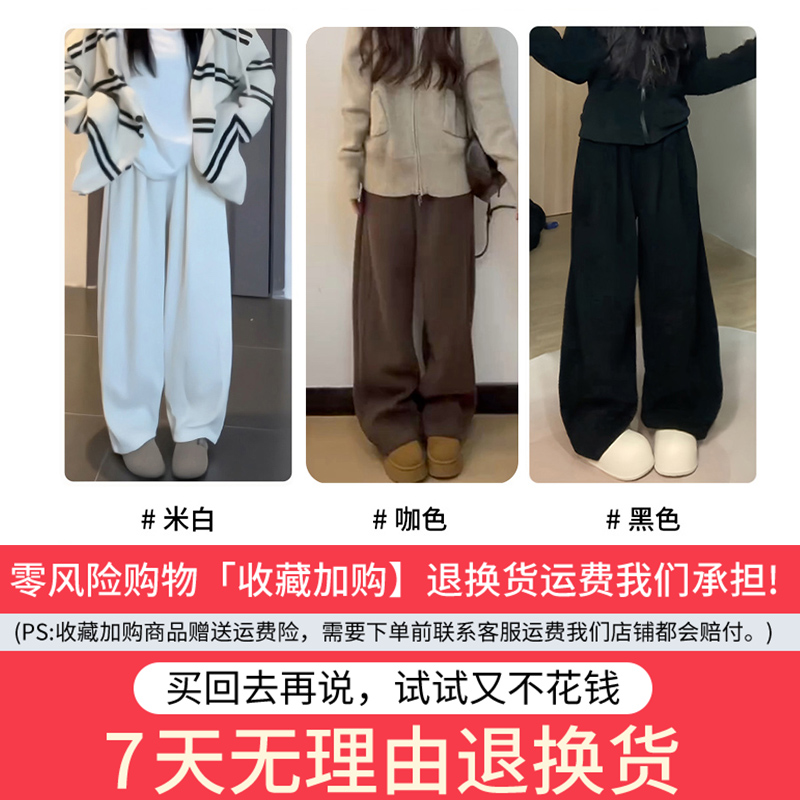 小个子秋冬加绒高腰显瘦休闲裤 2025新款 女秋季 米白色雪尼尔阔腿裤