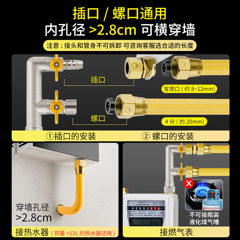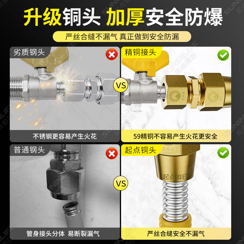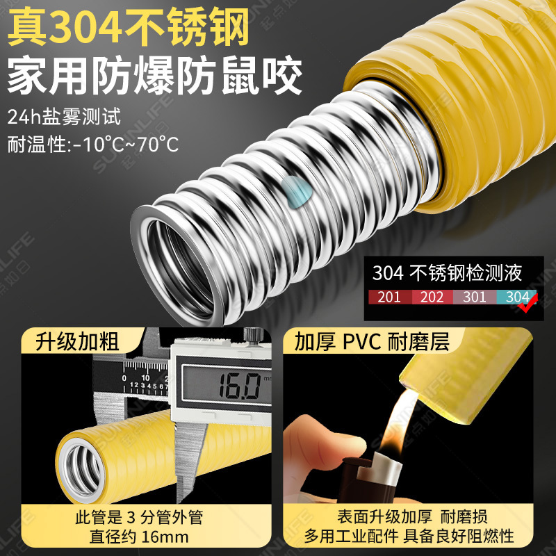 燃气波纹管不锈钢天然气热水器专用金属防爆管子软管家用款 新国标