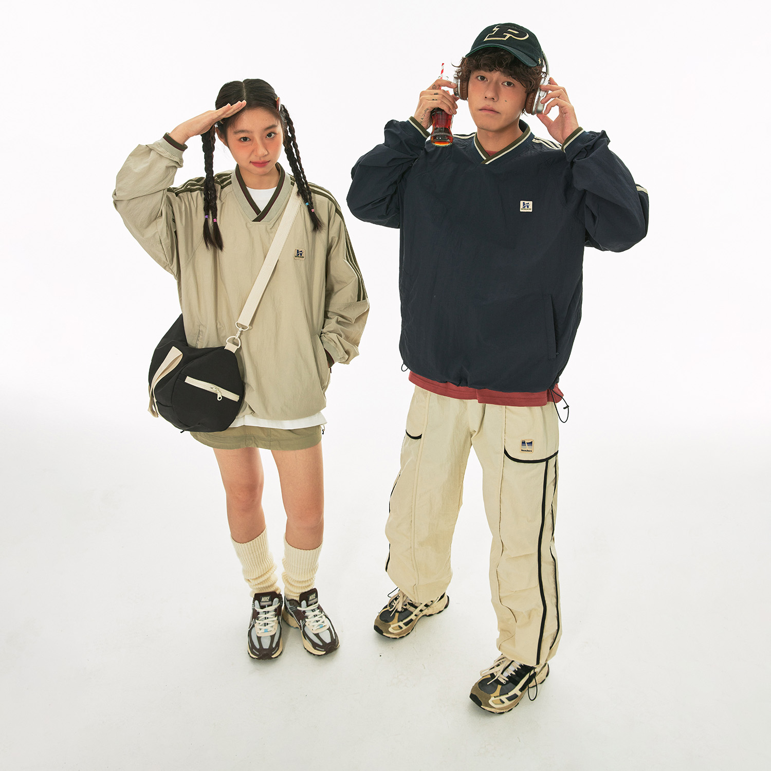 复古织带V领插肩袖 江南先生NewJNXS美式 情侣卫衣潮运动风 预售