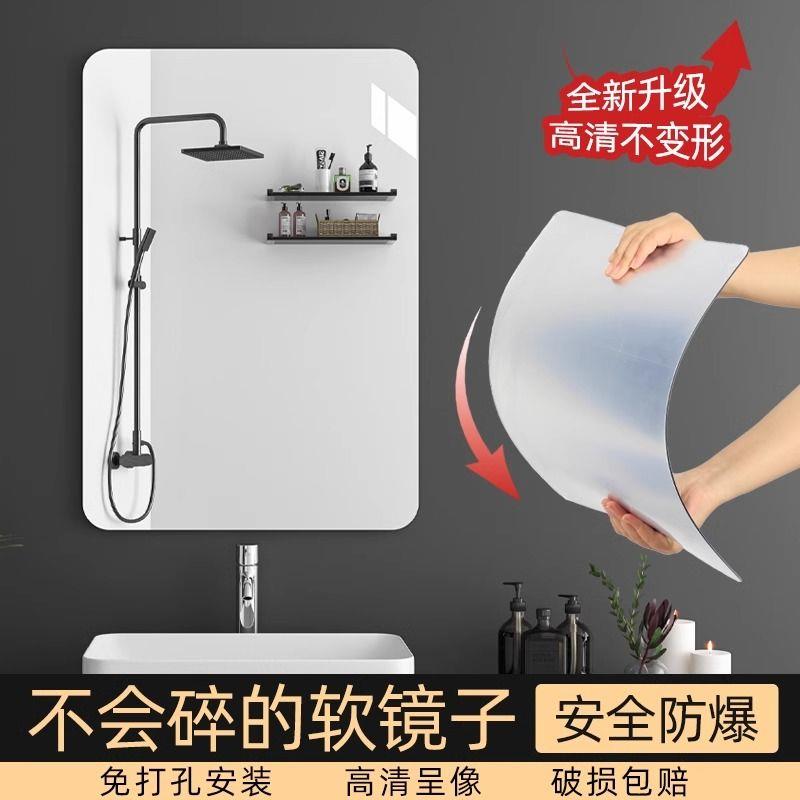 软镜子宿舍贴墙自粘卫生间洗手台盆 墙面免打孔浴室化妆镜粘贴高