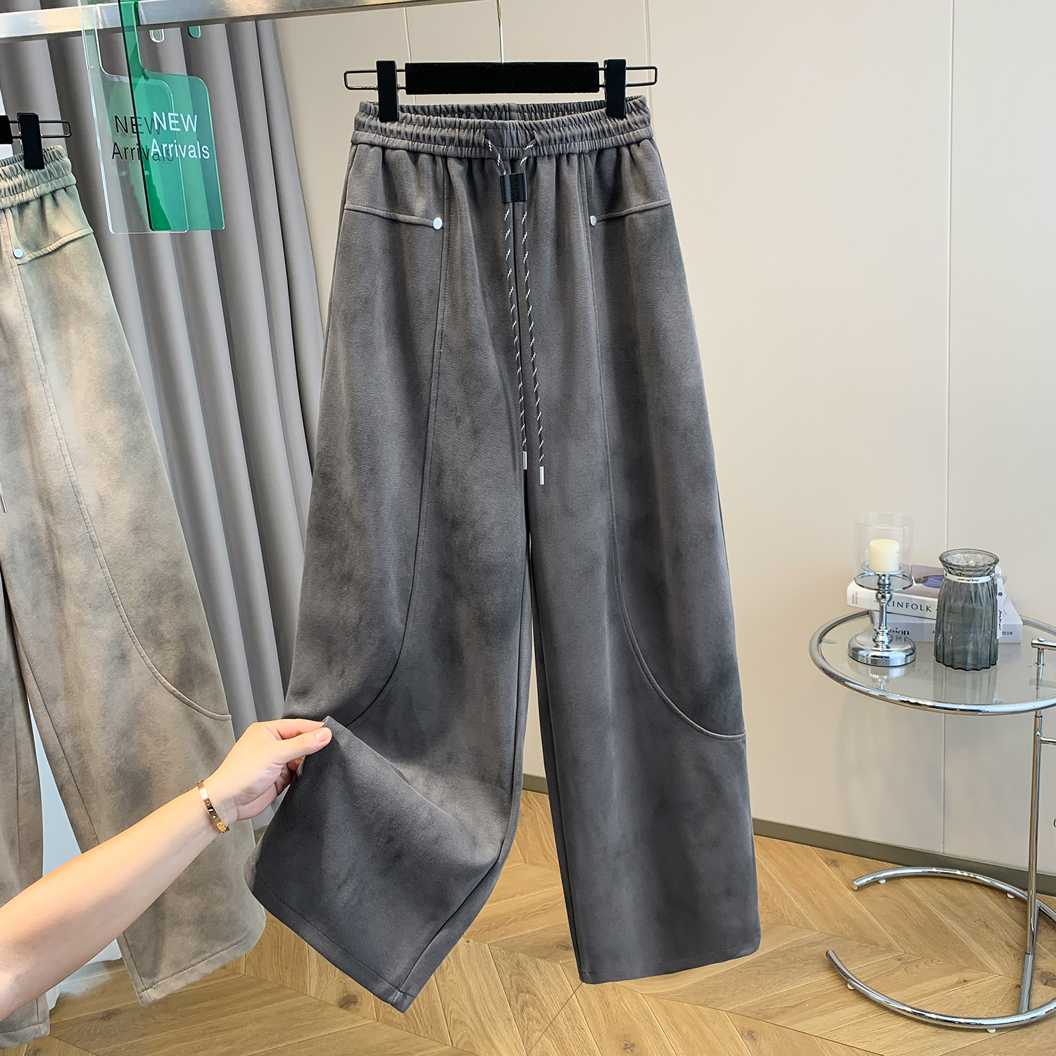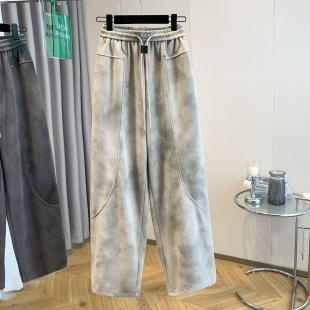 新款 胖mm松弛感运动裤 宽松显瘦工装 女梨型身材大码 阔腿裤 2025秋季