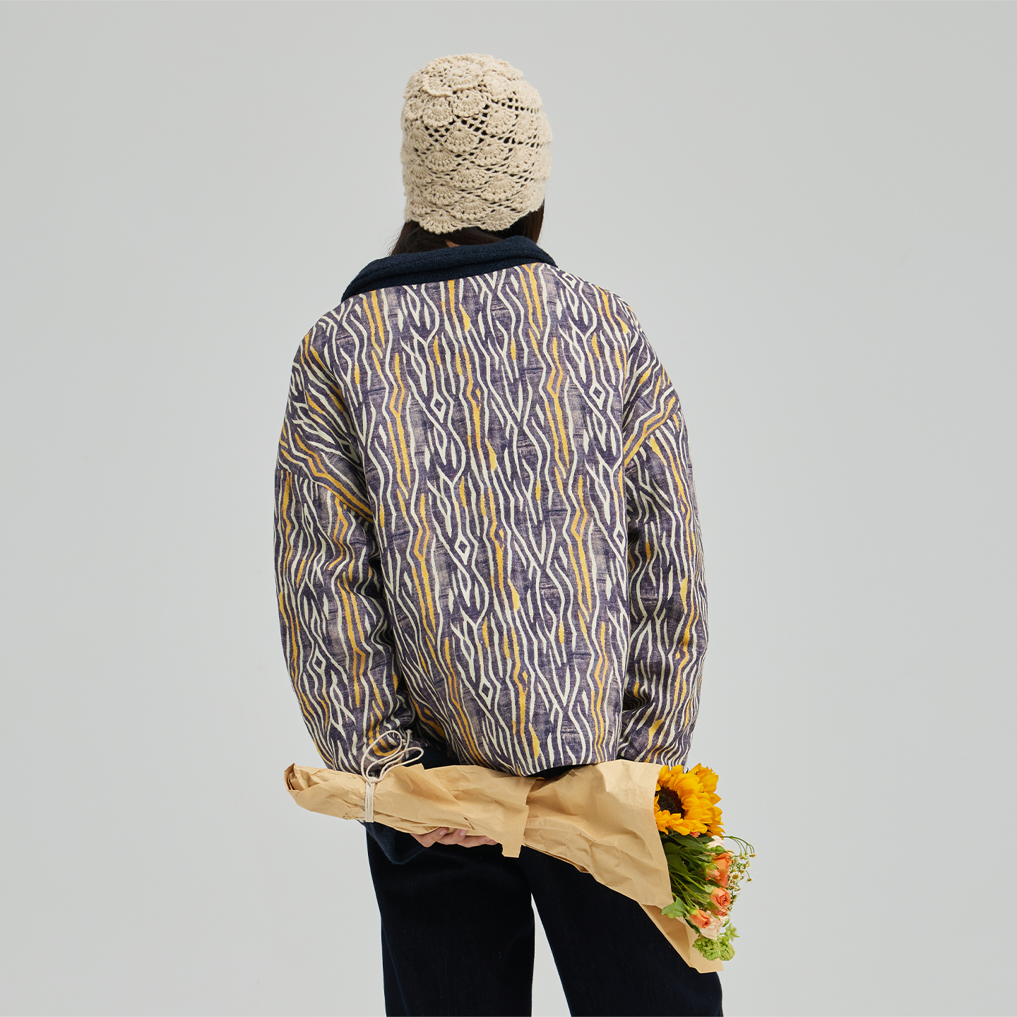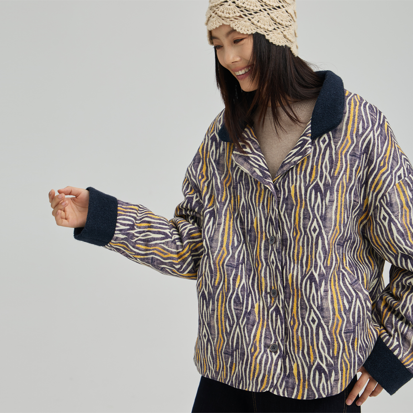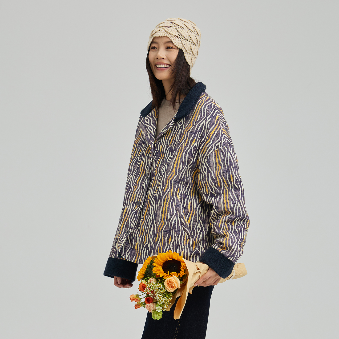 505877 英文字母立领宽松抽绳下摆上衣女装 三福棉衣2025冬季