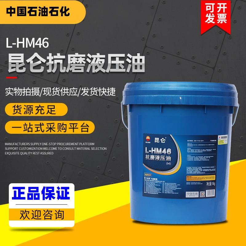 昆仑抗磨液压油46号高压68号注塑挖机叉车32 润滑油大桶200L18升