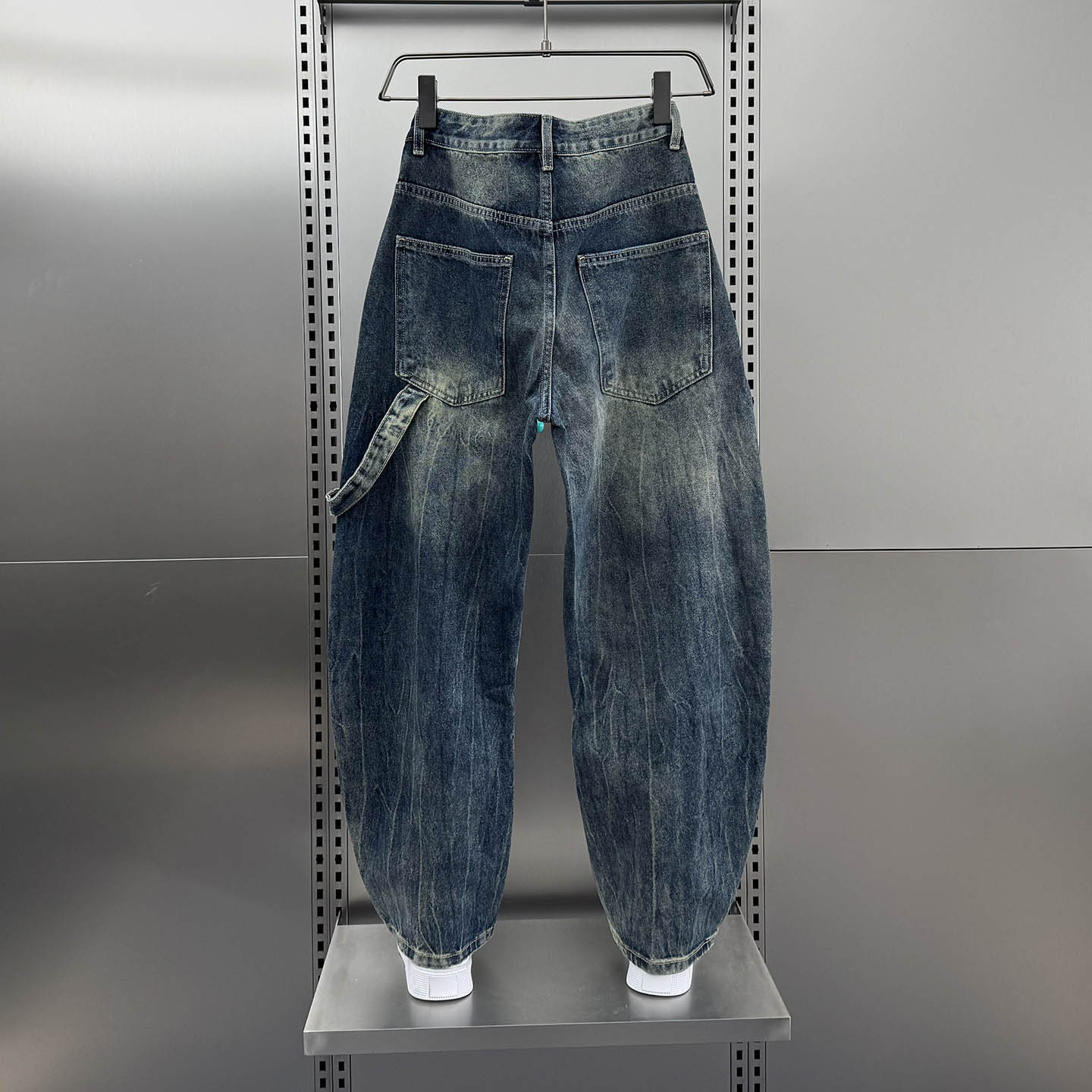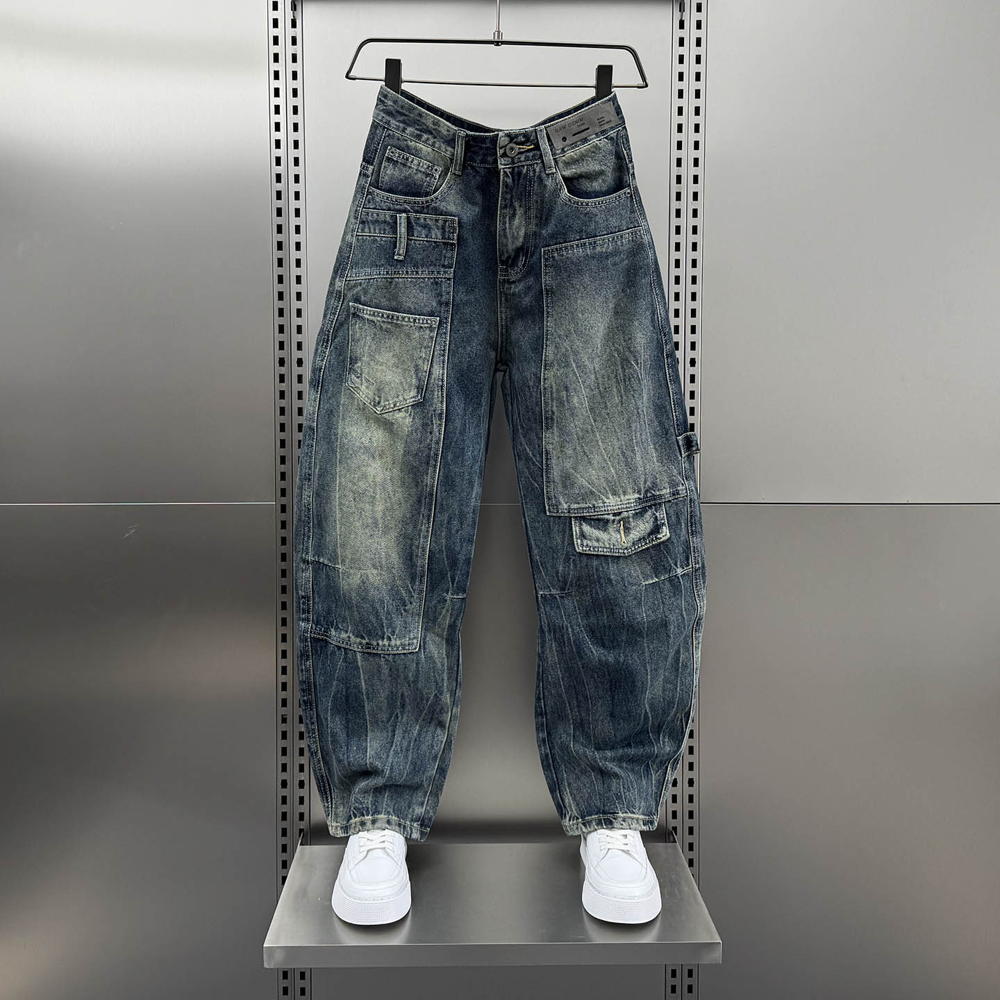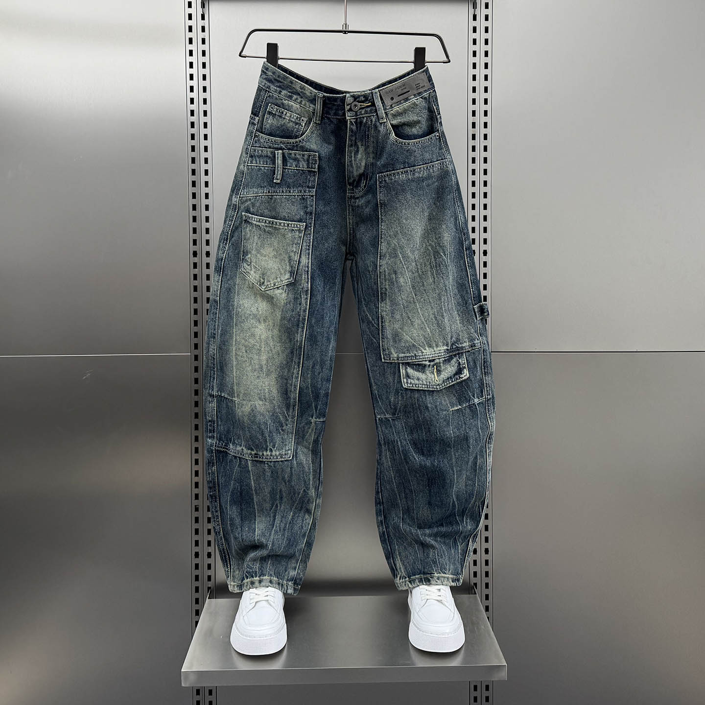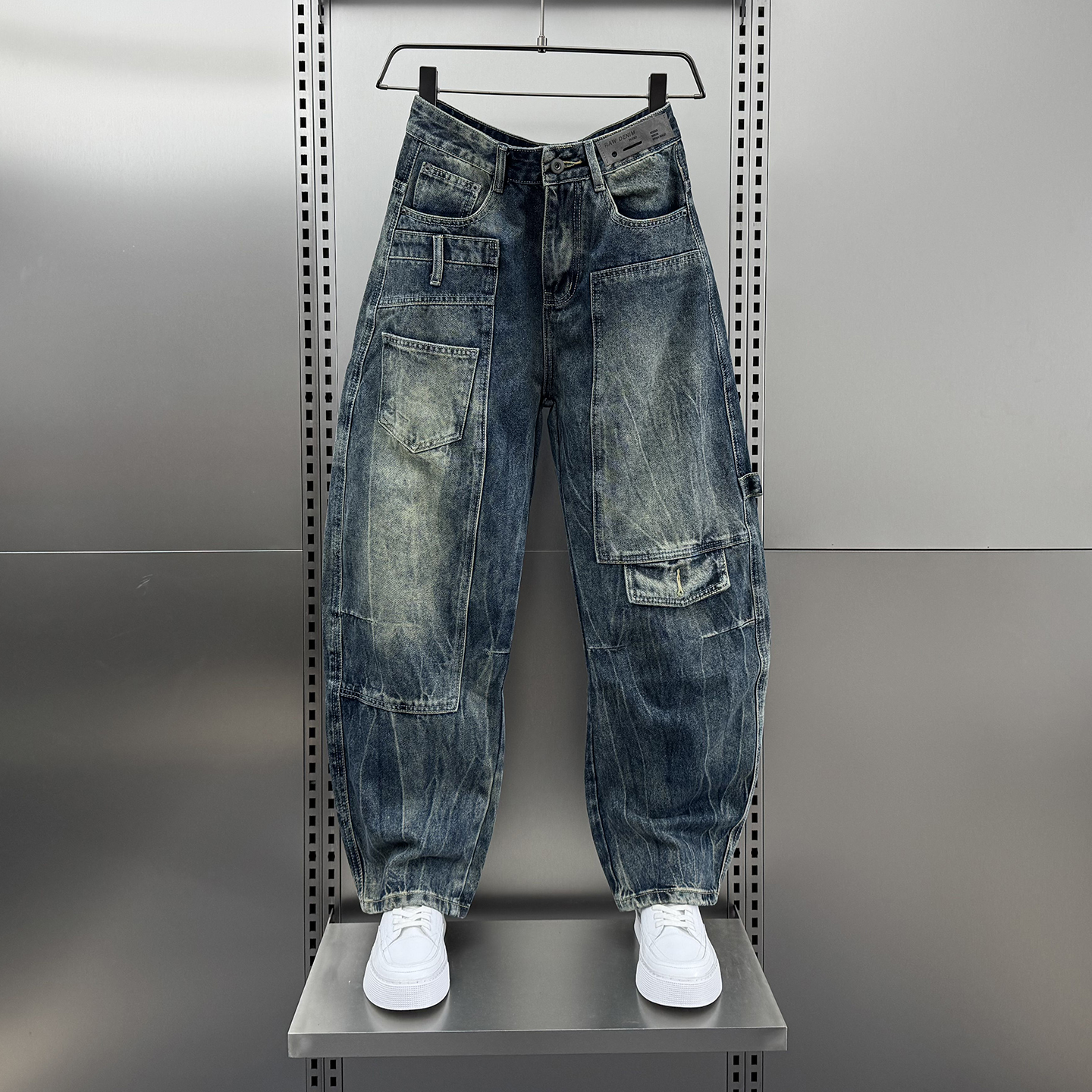 男女秋潮裤 江南先生NewJNXS美式 复古立体裁剪水洗做旧毛边牛仔裤