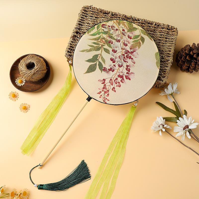 千里江山图团扇古风扇子汉服祇此青绿网红旗袍圆扇长柄儿童舞蹈扇