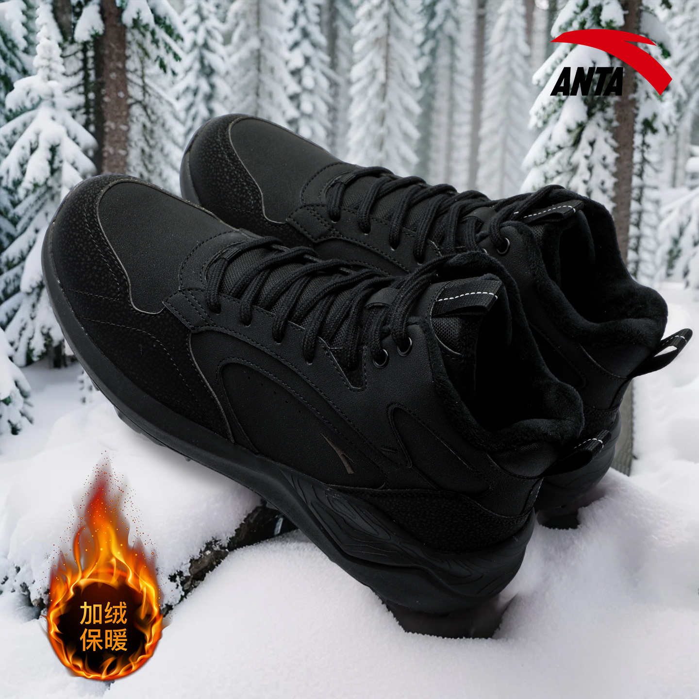 加绒棉鞋 皮面加厚保暖防泼水防滑运动鞋 男士 2025新款 冬季 安踏男鞋