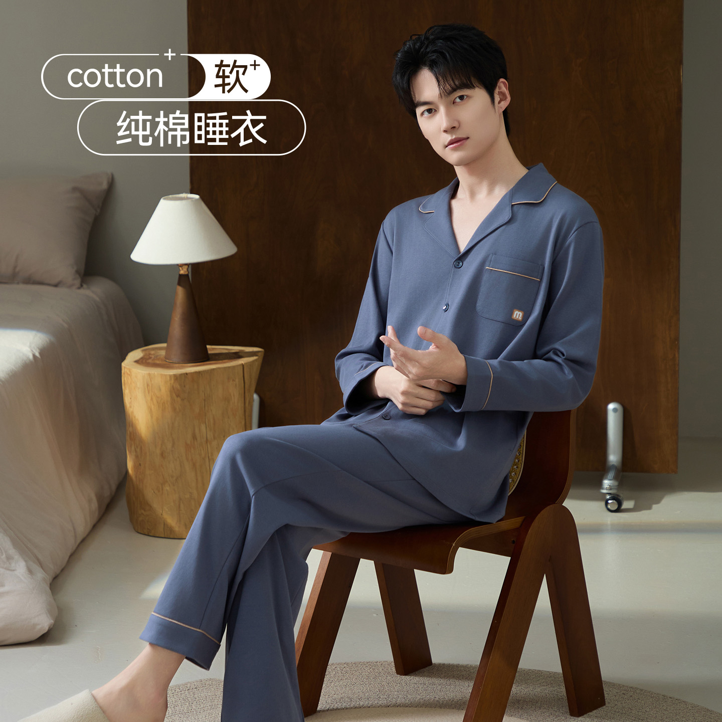 2025新款 长袖 长裤 猫人纯棉男士 秋冬季 春秋款 家居服衣套装 睡衣男款