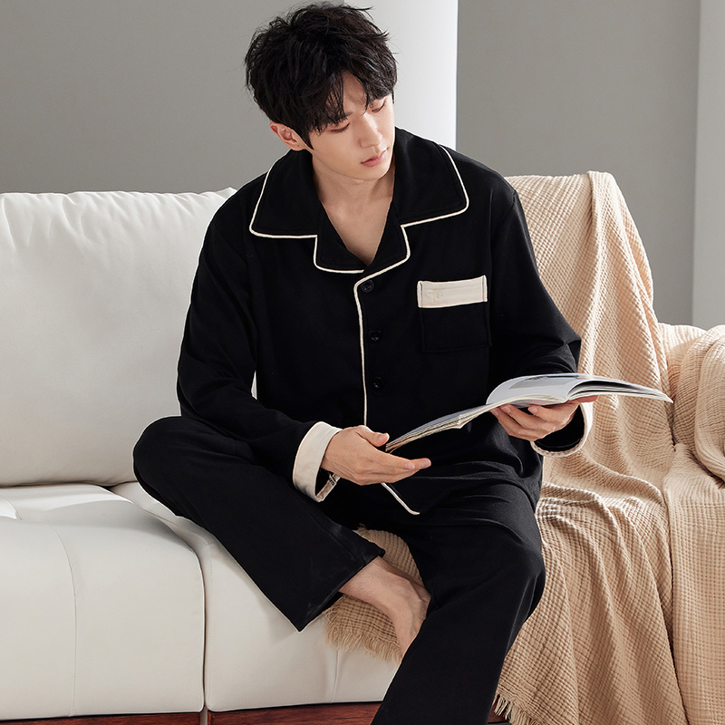 秋季 纯棉长袖 套装 睡衣男士 薄款 春秋款 秋冬季 家乐芬男款 家居服男式