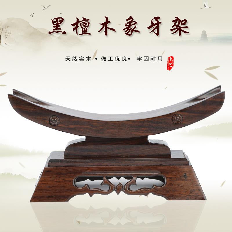 红木象牙支架宝刀剑架工艺品摆件实木托架装 饰牛角展示架横财底座