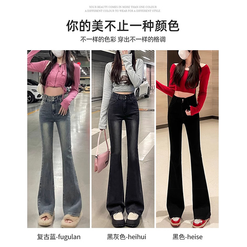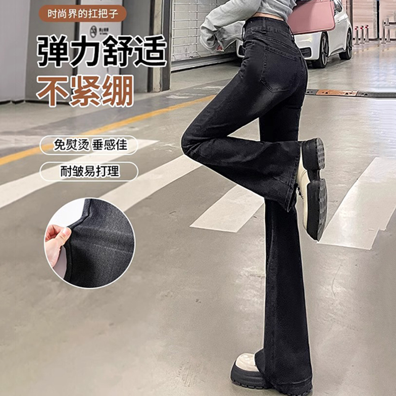 复古马蹄喇叭裤 加长黑灰微喇牛仔裤 女加绒2025年秋冬高腰显瘦修身