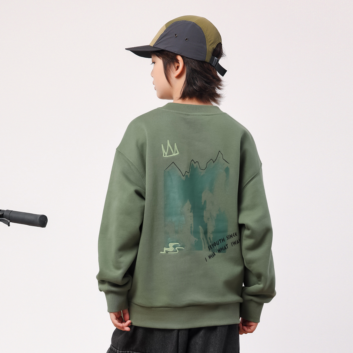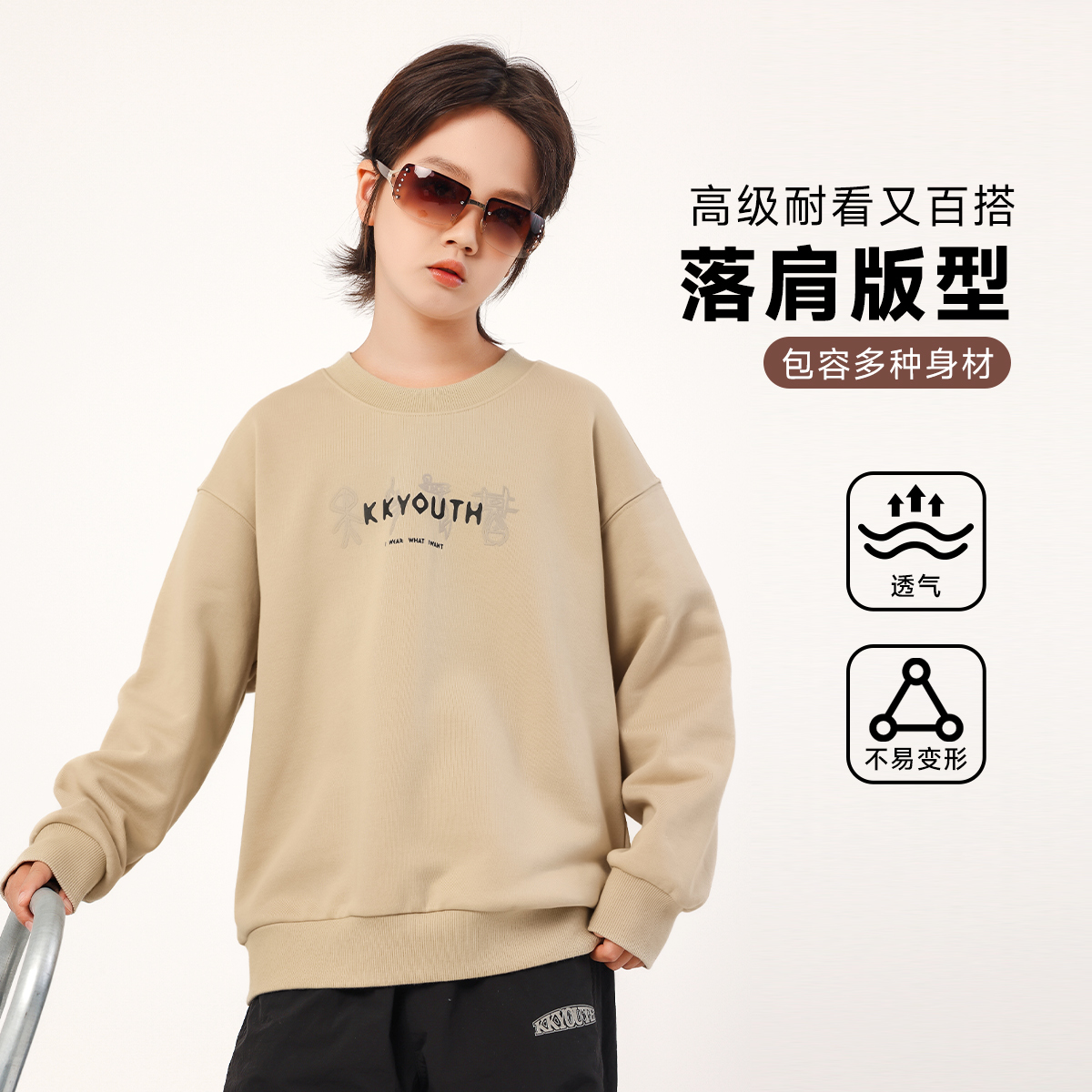 2025秋冬新款 男童加绒圆领卫衣中大童保暖学生上衣洋气儿童潮绒衫