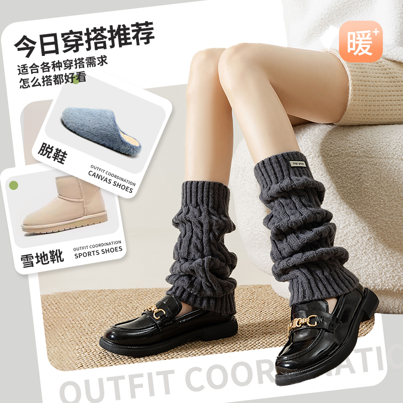 白色堆堆袜女小腿配勃肯鞋 长筒纯色螺纹保暖布标袜套 秋冬季