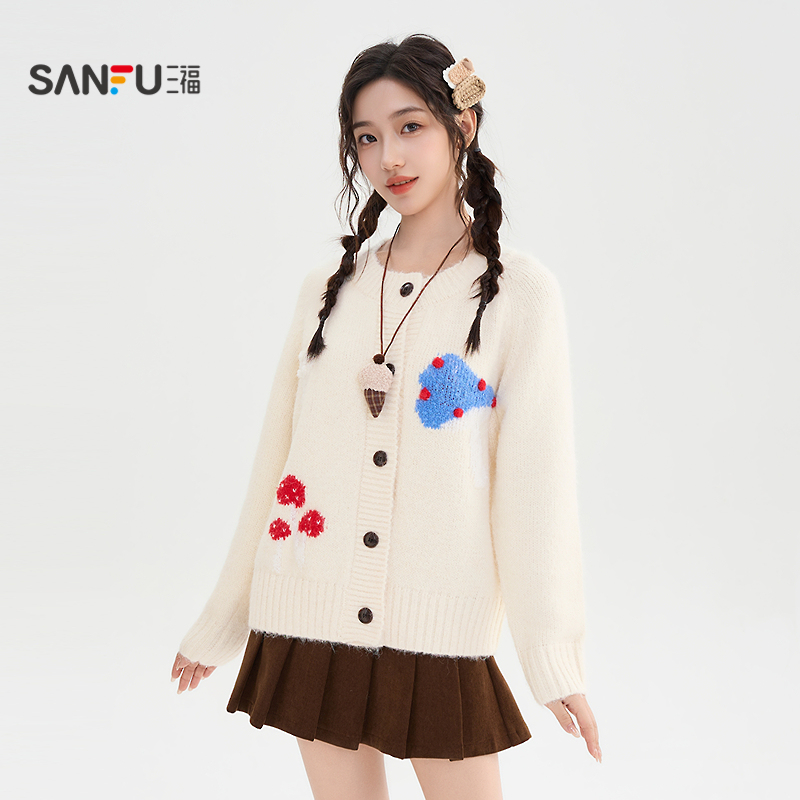 可爱趣味小众毛衫 森马毛衣女冬季 设计感萌宠提花软糯上衣2025新款